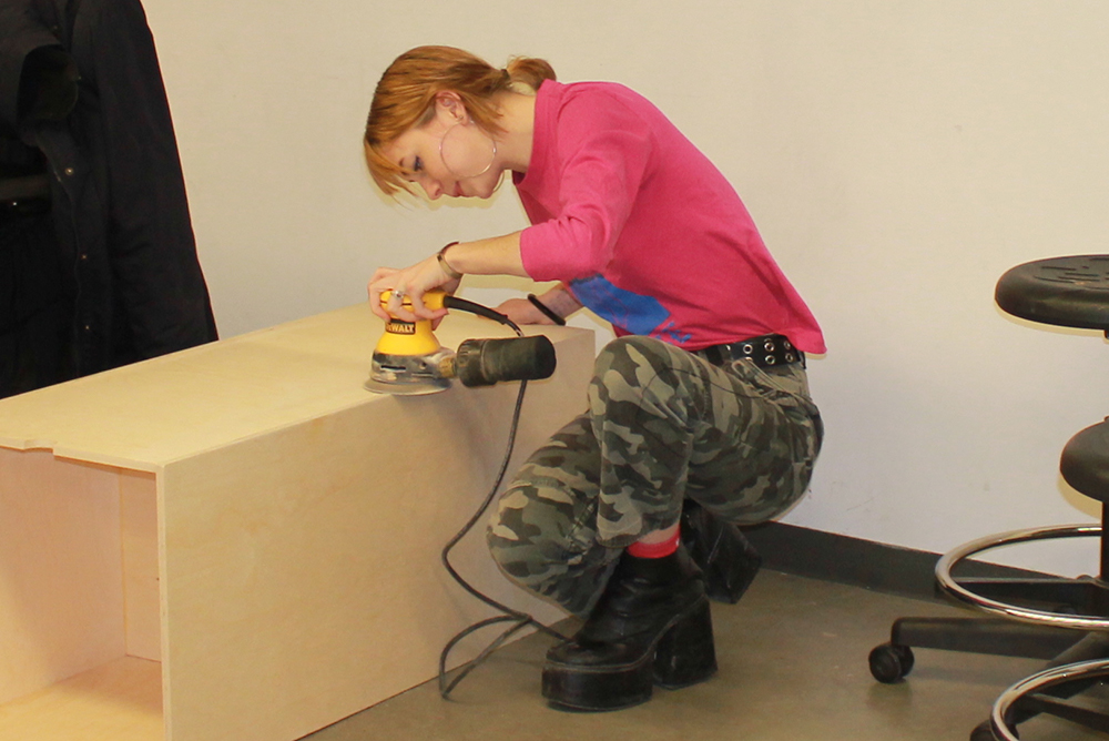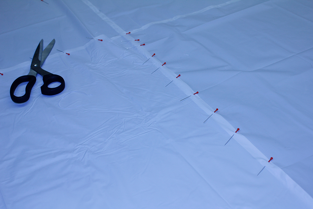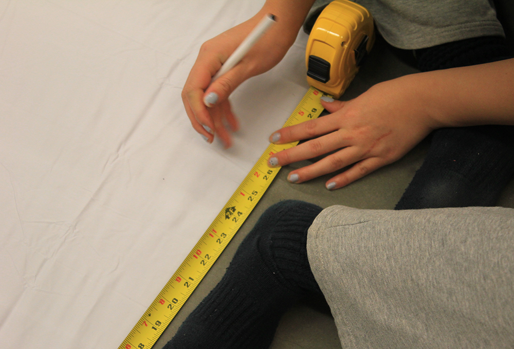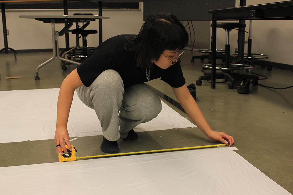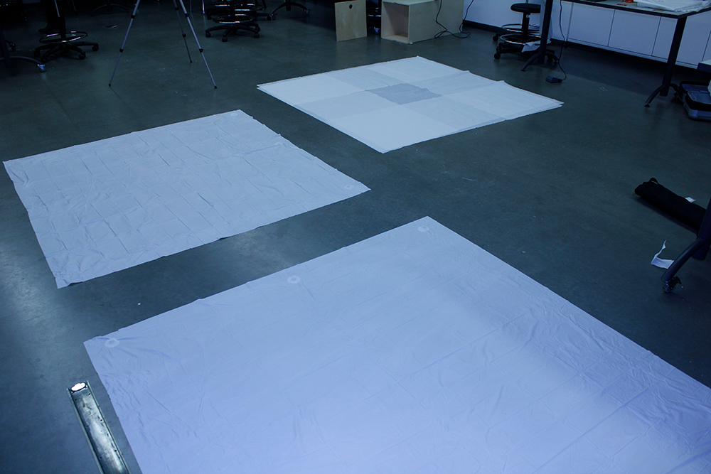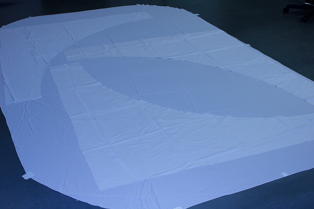 The projection maps and entry ways made of shower curtain liner are stuck to the structure with tape.