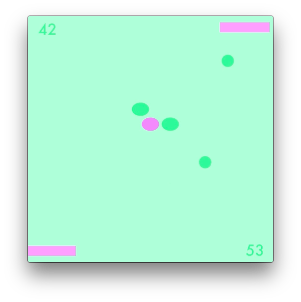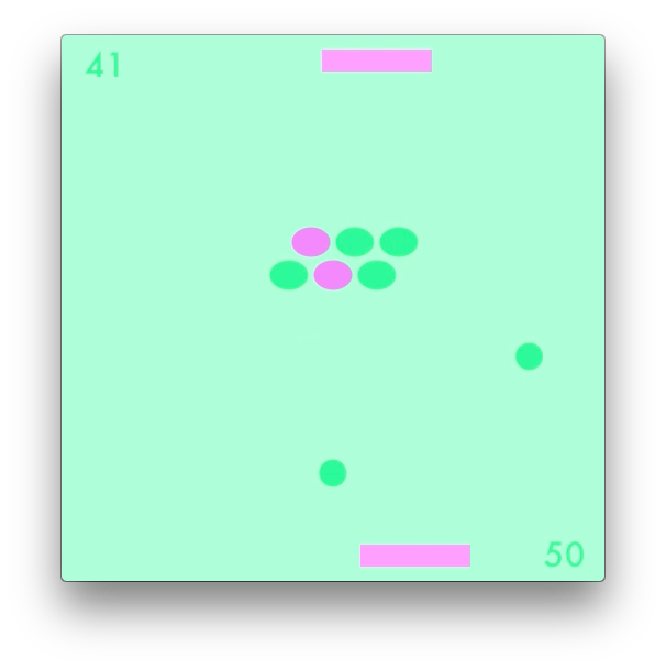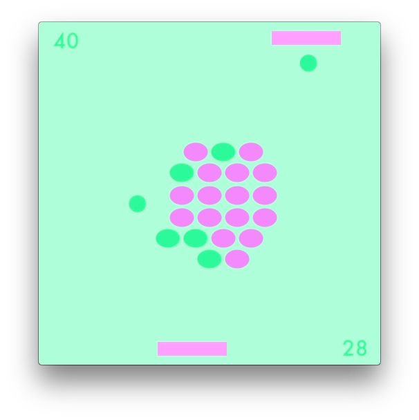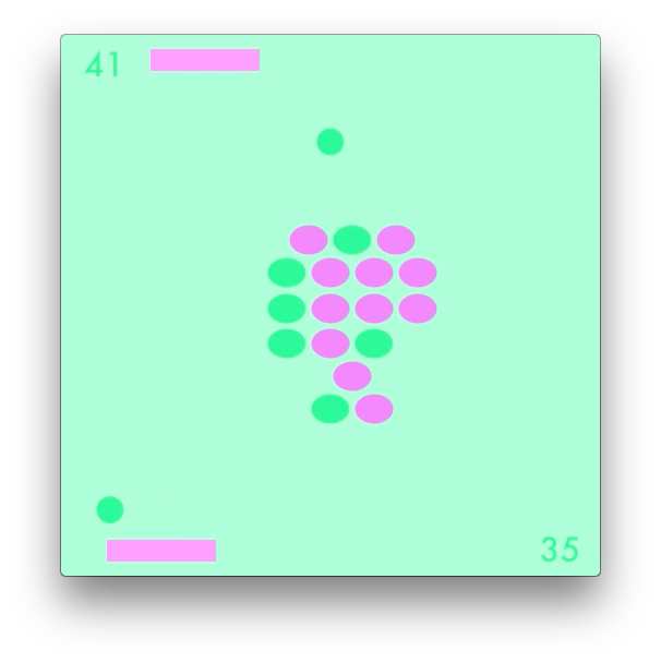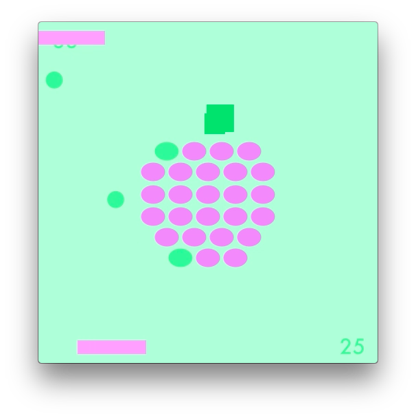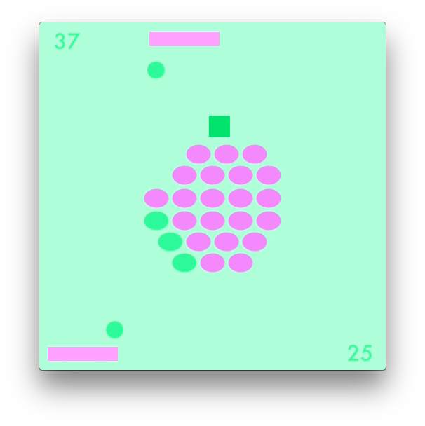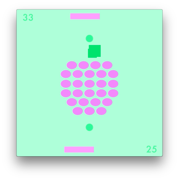 Poproduce is a game mashup between pong and brick break with three levels of purple produce popping madness. Two players work and compete to destroy the fruits and veggie. Bricks must be hit a minimum of two times in order to dissipate and issue the player who last deflected the lethal ball a point.